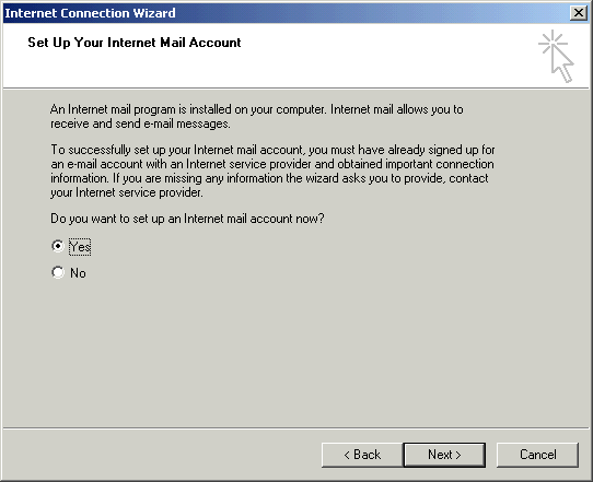 - Click the Yes radio button in the Do you want to set up an
